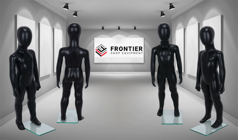 Child Egg-Head Mannequin in Black 80cm FR-R342B. Perfect for window displays or instore merchandising.