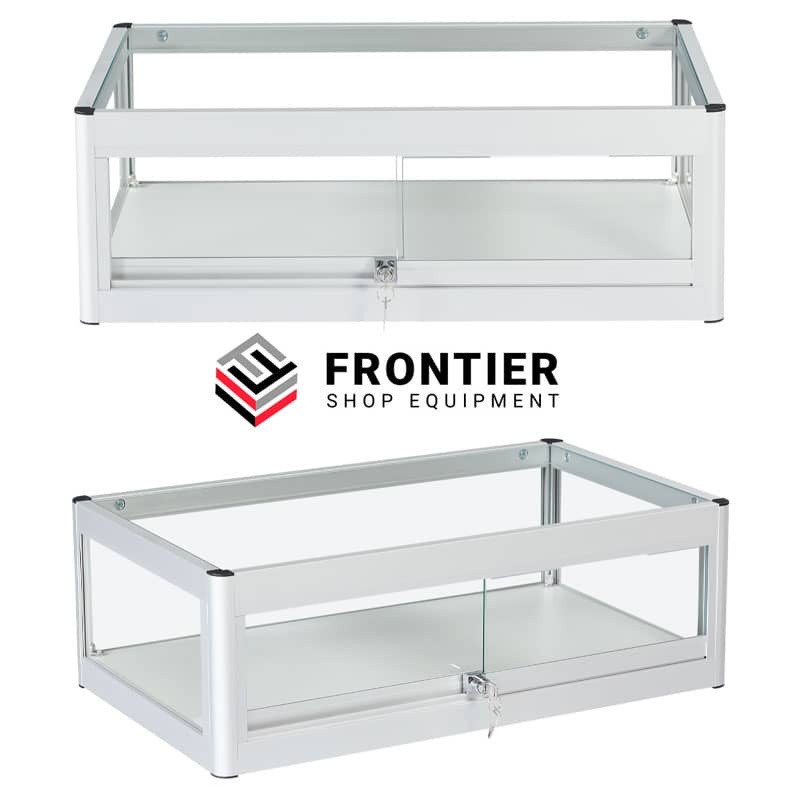 Our modern high visual counter top display cases offer maximuim viewing for your products at eye level. A great choice of shapes & sizes in Black or Silver Aluminium are designed to show your products in a safe and secure way. Our lockable cases are manufactured to the highest quality to ensure lasting durability and will compliment any shop, mobile retail or home environment.
