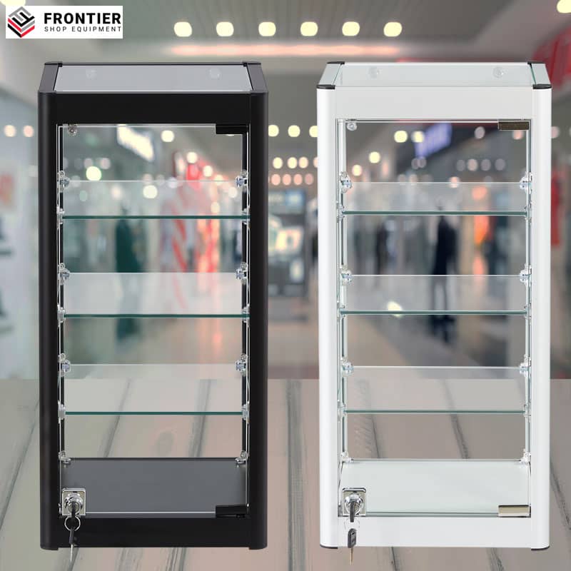 Our modern high visual counter top display cases offer maximuim viewing for your products at eye level. A great choice of shapes & sizes in Black or Silver Aluminium are designed to show your products in a safe and secure way. Our lockable cases are manufactured to the highest quality to ensure lasting durability and will compliment any shop, mobile retail or home environment.