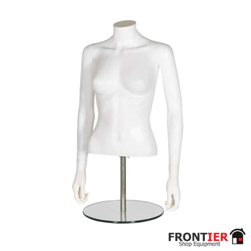 Female White Torso with Arms Mannequin, Ideal for displaying shirts, T shirts, Jumpers etc. Perfect for window displays or instore merchandising.