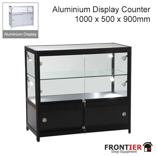 Glass Display Counter Black Aluminium 1000mm FR-R1583