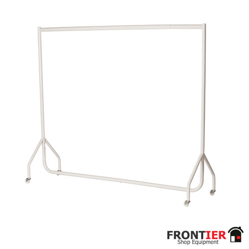 This Gloss White Heavy-Duty Clothes Rail is four feet wide and is used for displaying your clothing. It is made with strong tubular steel and includes casters. A professional clothes rail for hanging your clothing items.