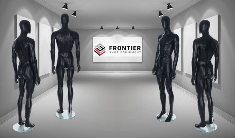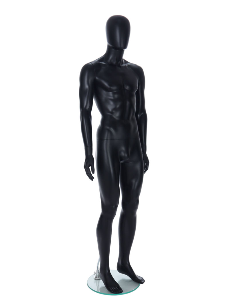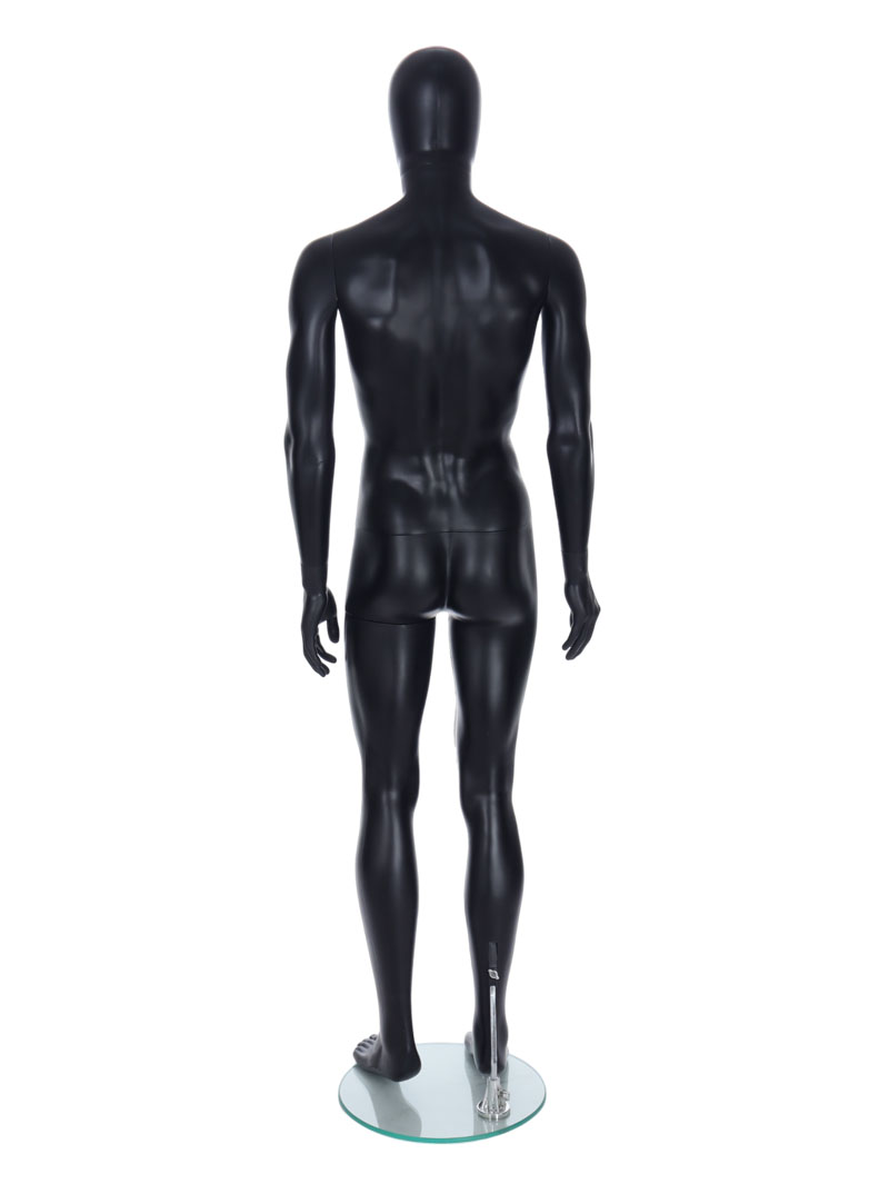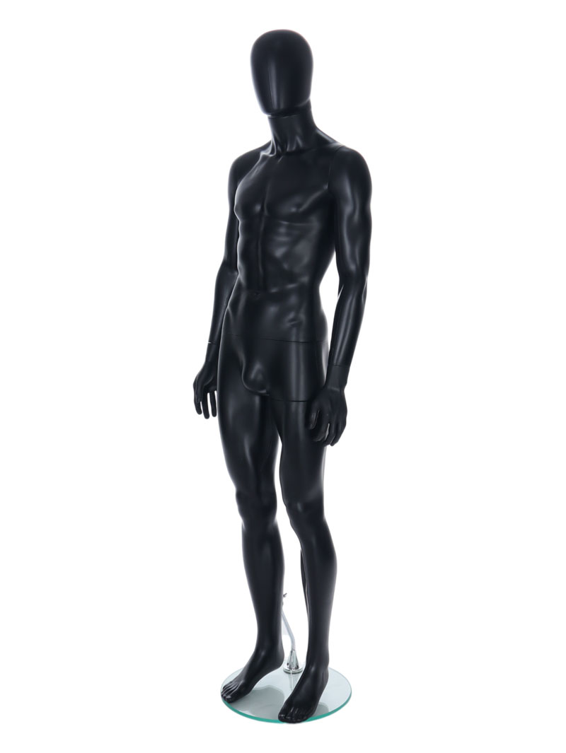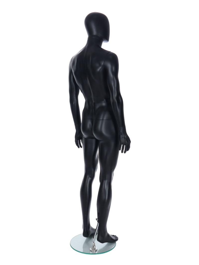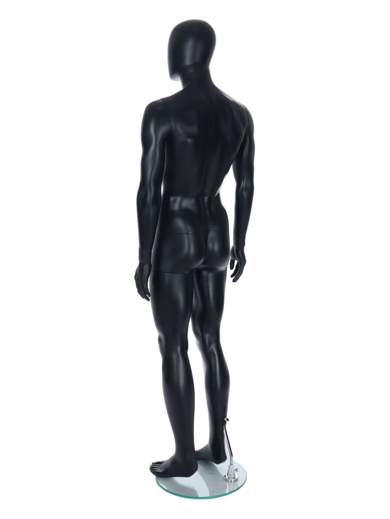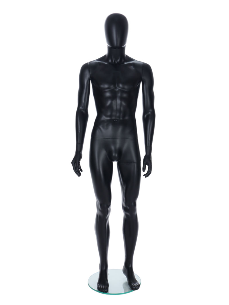 Male Black Egg Head Mannequin FR-R323B. Perfect for window displays or instore merchandising.