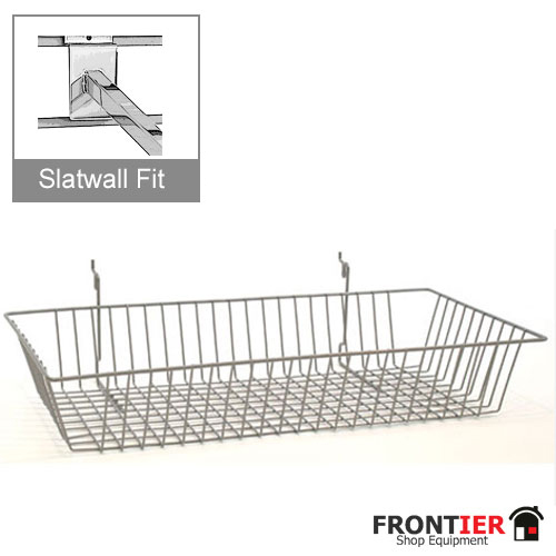 Slatwall / Gridwall Shallow Basket FR-R524 This Basket can be used on either Slatwall or Gridwall, it is 600mm wide, 300mm deep, 100mm high. It can be used to hold various items and is a great addition to your display area. Product Information Slatwall / Gridwall Shallow Basket FR-R524