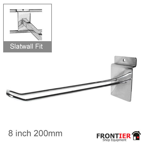 Slatwall Looped Euro Hook 200mm FR-R530   This  Slatwall looped euro hook is 200mm / 8" long and can be used to display a huge variety of items and is a great addition to your display area.   Product Information   Slatwall Looped Euro Hook 200mm FR-R530