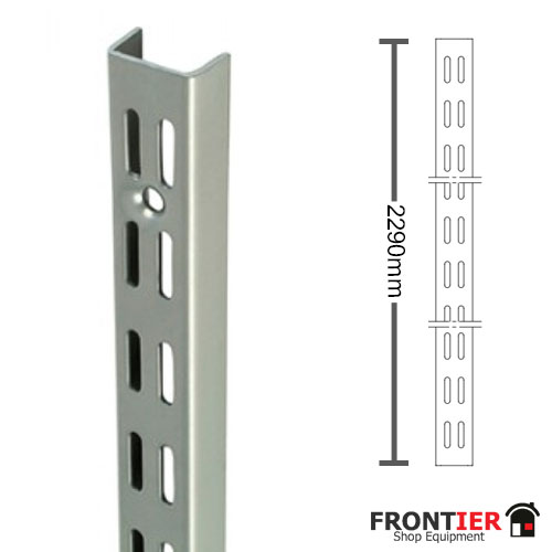 These Twin Slot Uprights are 2290mm in length, made from Chrome plated steel with well spaced screw holes for attaching to your walls. Easy to assemble and based on one metre widths with 32mm spacing. Used for all type of retail wall displays.